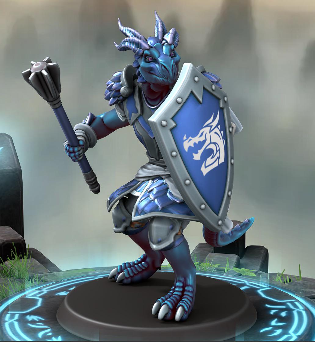 Fiddenbun, the Blue Dragonborn Cleric of Thaylor (God of Trickery)